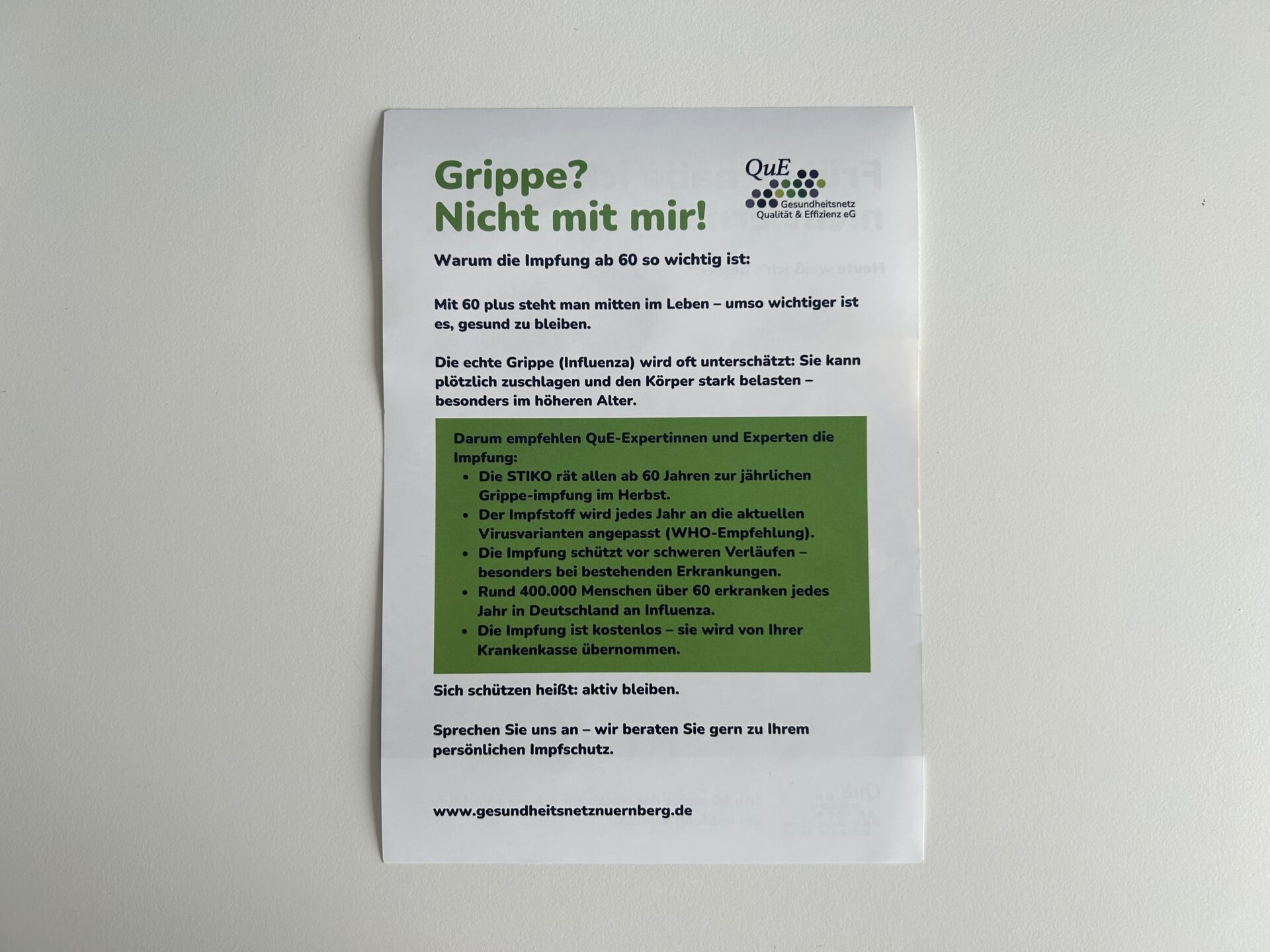 / Flyer „Früher habe ich Grippe nicht ernst genommen“