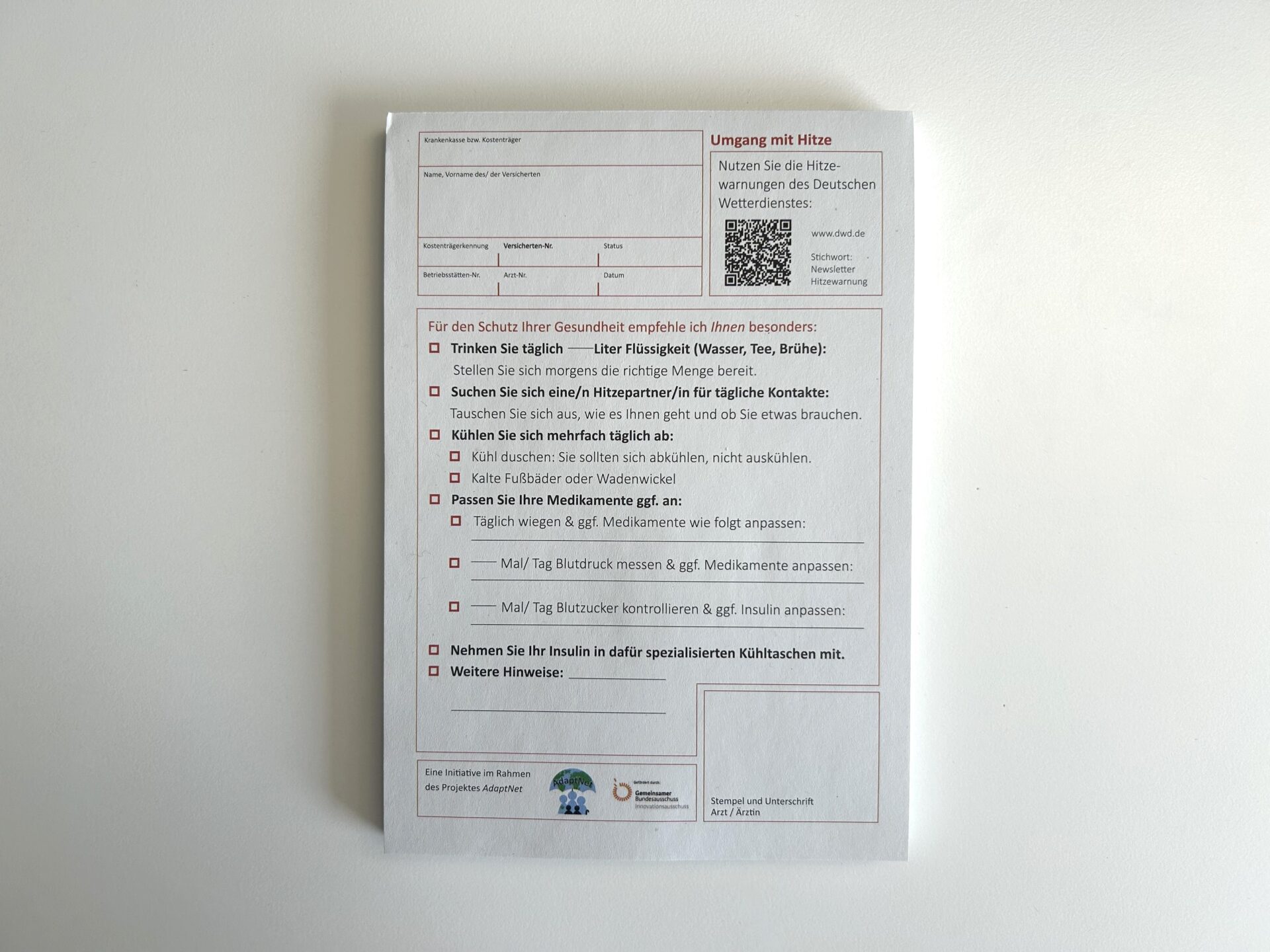Infozept zur Herausgabe an Patienten – entwickelt im Rahmen des Projektes AdaptNet 2025.