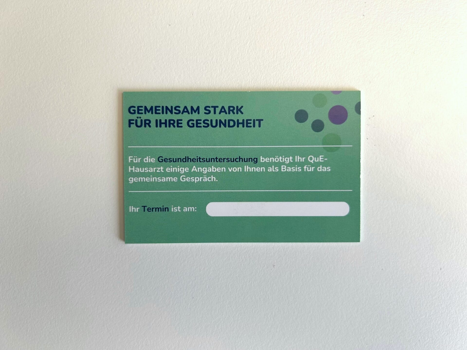 Kärtchen in Visitenkarten-Format zur Herausgabe an den Patienten z.B. bei GU-Termin-Vergabe.