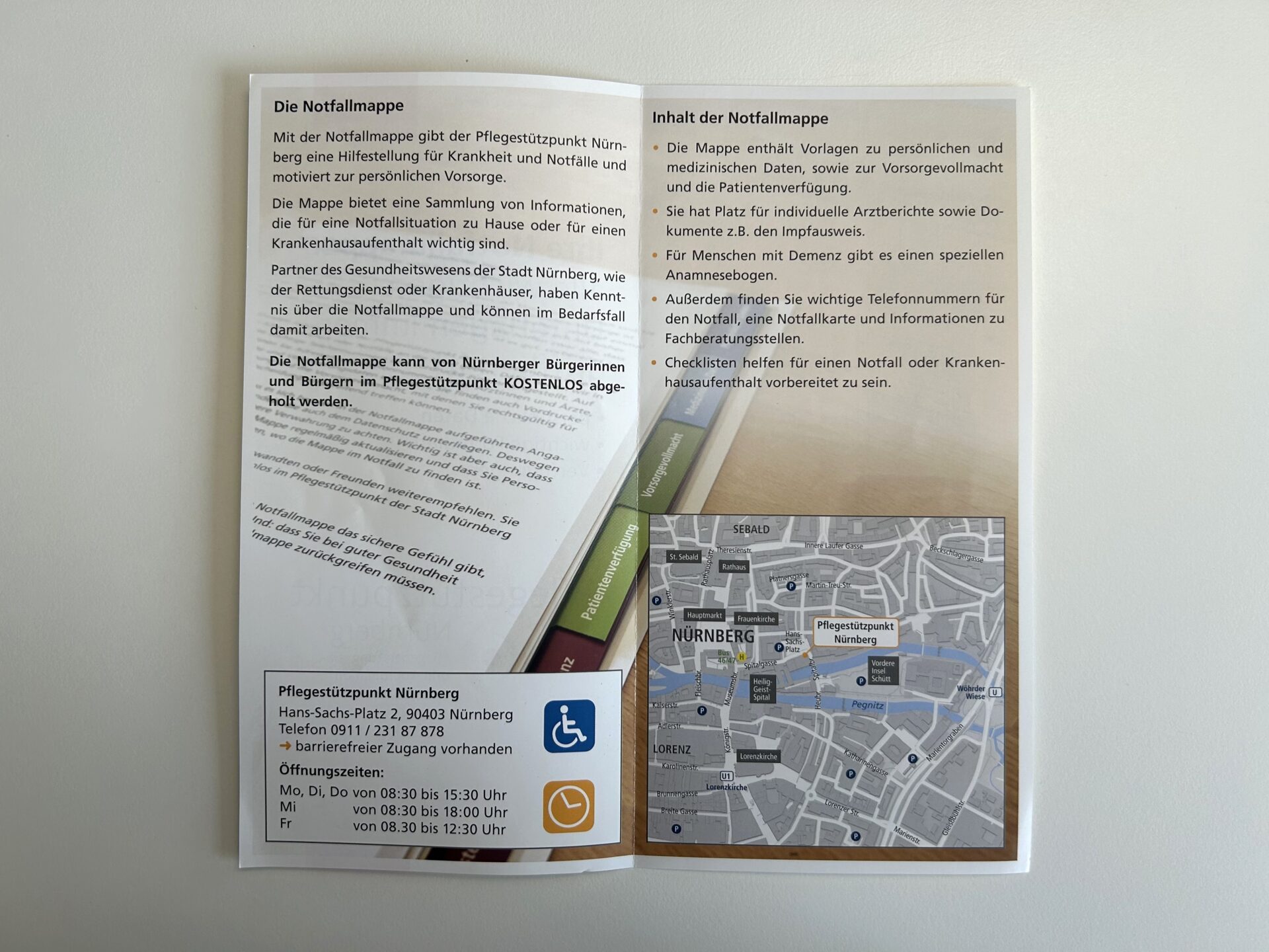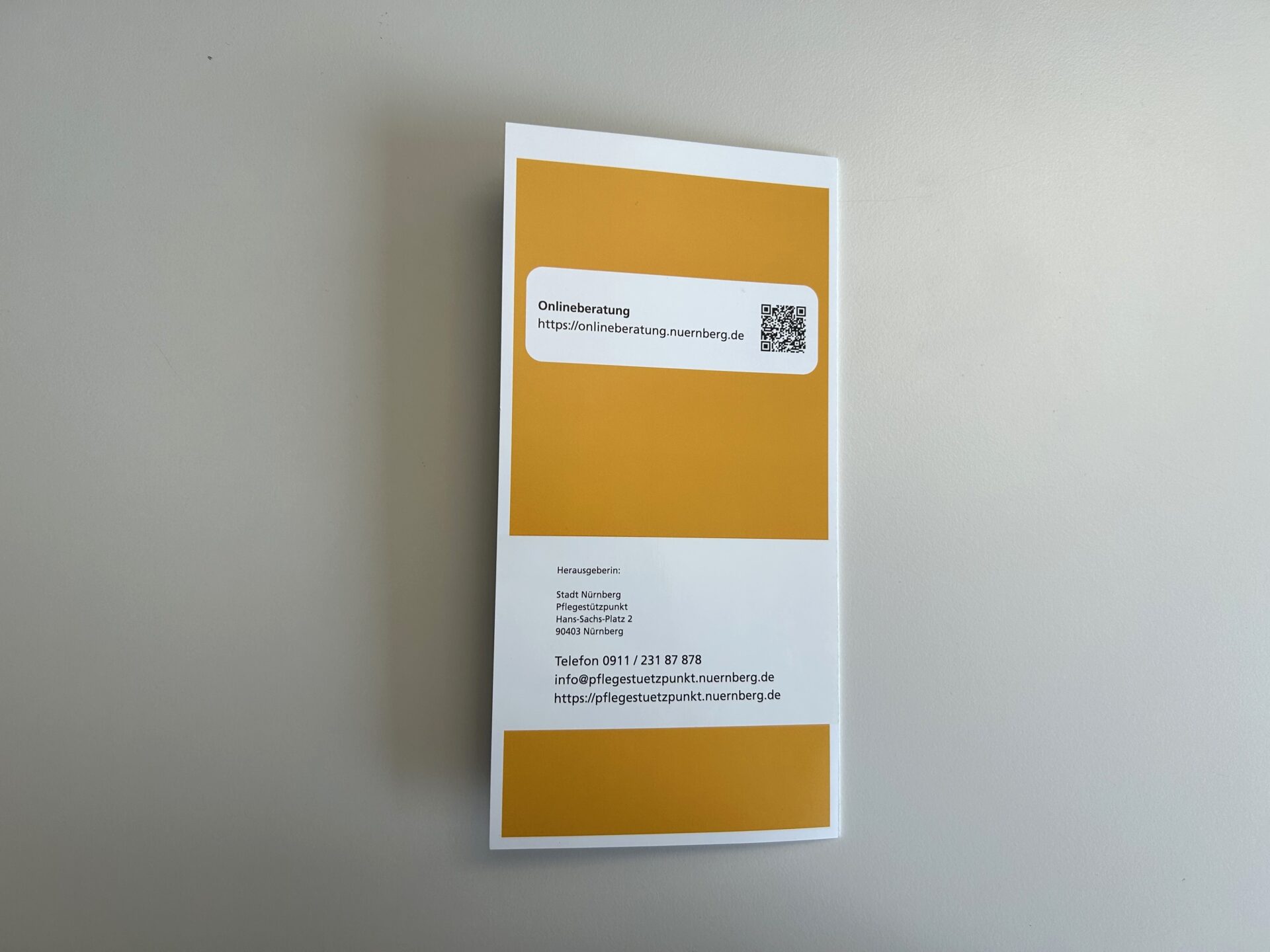 Informationsflyer zum Pflegestützpunkt Nürnberg zur Weitergabe an Patienten.