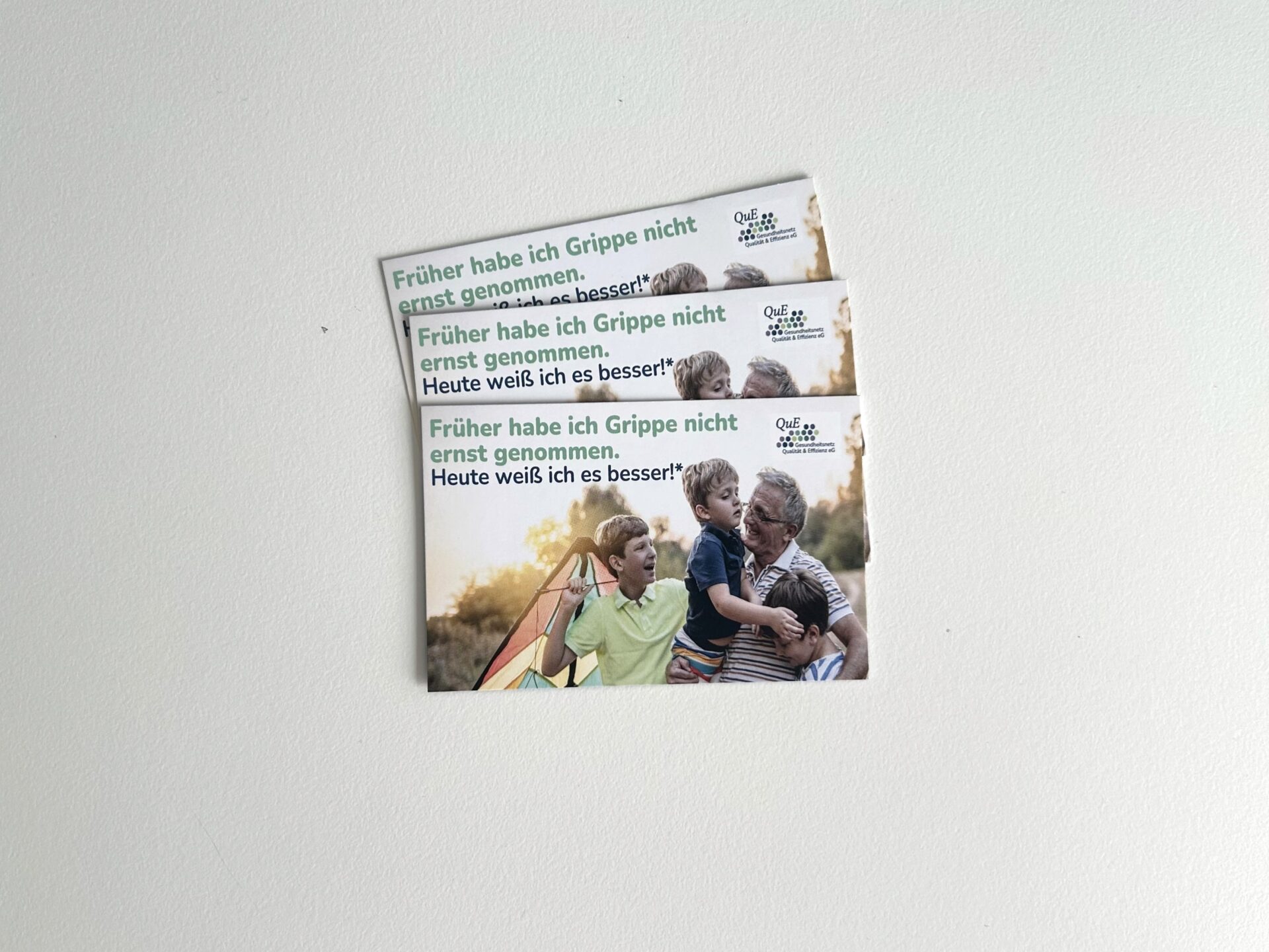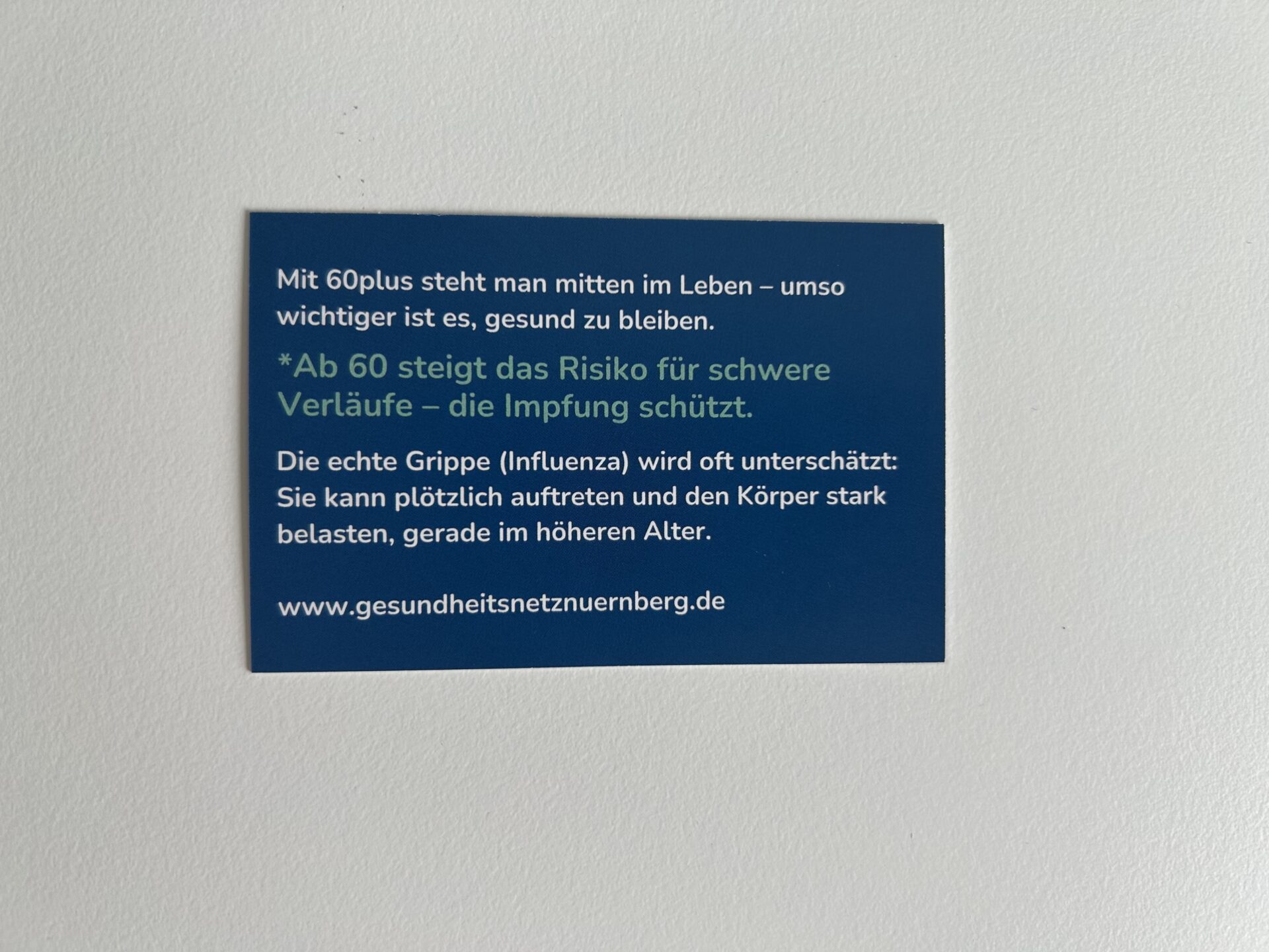 Visitenkarte „Früher habe ich Grippe nicht ernst genommen“ zur Herausgabe an den Patienten.